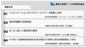 黒部特任助教の受賞演題は「大腿骨近位部骨折術後の退院時歩行機能予測モデルの一般化可能性」です。この研究は第三期先鋭領域融合研究群「標準化医療データ活用研究拠点」のプロジェクトの一つとして理学療法学専攻の百瀬公人教授、中村慶佑助教と共に予測モデルの一般化可能性を検討した研究です。また、保健学科と長野県理学療法士会との連携協定を結び活動を行っている長野県データベースプロジェクトとして収集したデータをもとにしています。